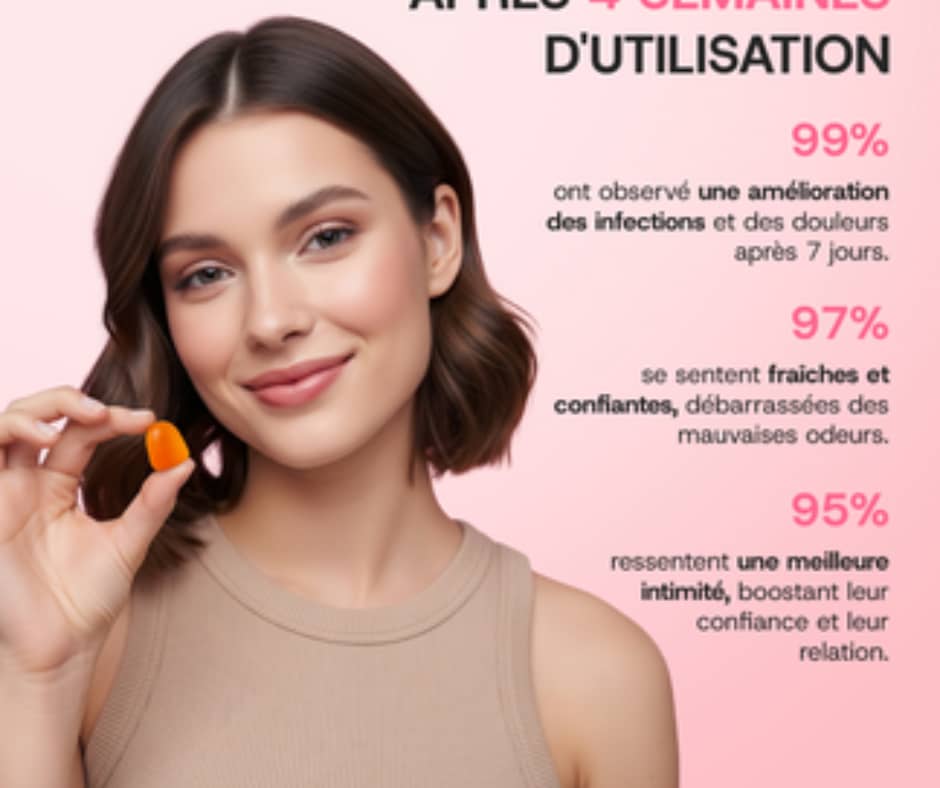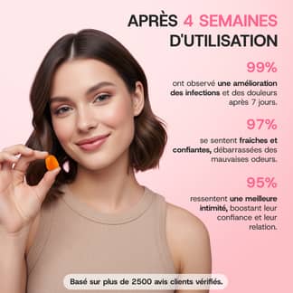 Après une semaine seulement, j’ai commencé à sentir un vrai mieux-être. Moins de gêne intime, une sensation de fraîcheur et d’équilibre au quotidien. Je suis conquise !