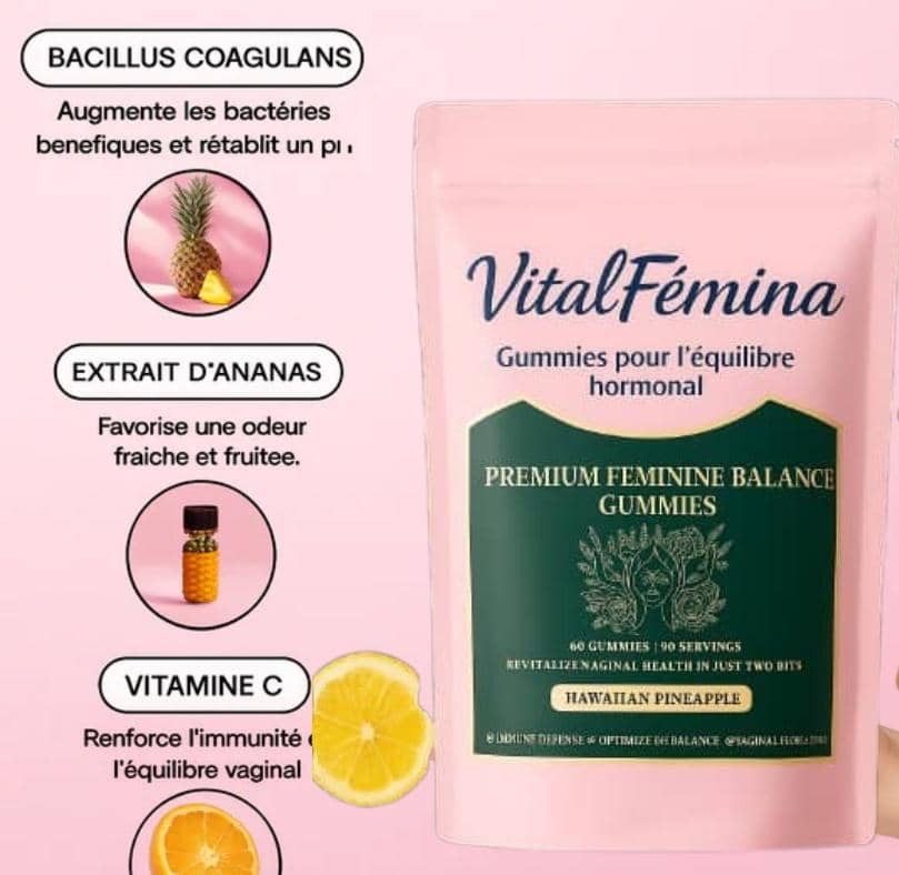 VitalFémina, c’est une cure de gummies naturelles pensée pour neutraliser les odeursrééquilibrer ta flore intime et te redonner cette confiance oubliée 💋.